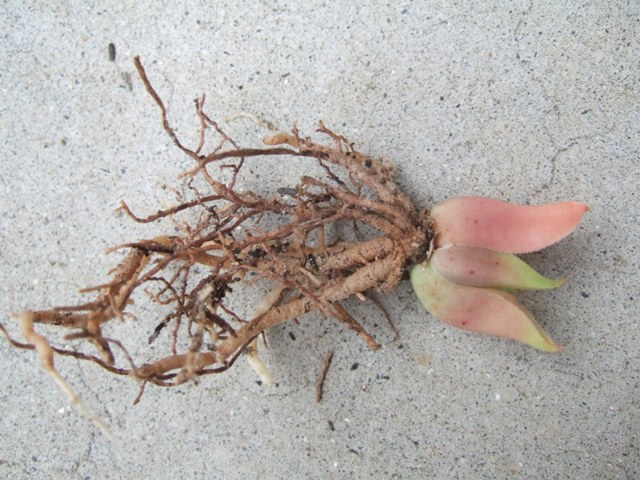 4:手で軽くつまみ力を要れずに引っ張っただけで、直ぐに取れるような根を排除、太い根も長すぎるので少しだけ剪定した。